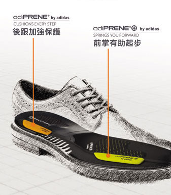 Rockport這一季春夏男、女皮鞋鞋墊多半採用ADIPRENE by adidas這項技術,