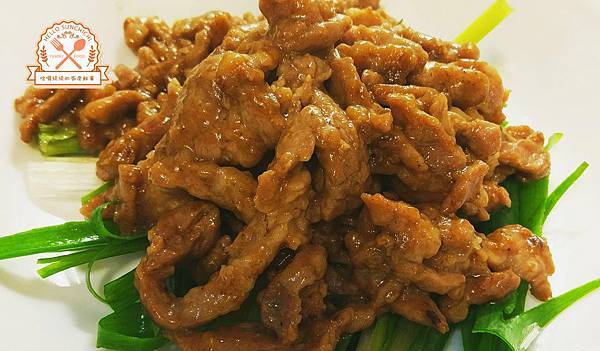 5.豬肉絲放回鍋中和調味料拌熟後即可盛盤(蔥絲舖在底下裝飾)