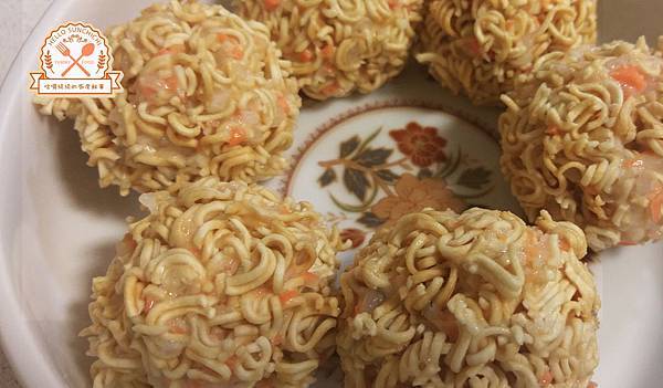 今天算是個換湯不換藥的料理,將平常用來煎成蝦餅的蝦漿,包裹著滿滿的泡麵餅乾,製作成爽口酥脆的蝦球!有別於一般吃煎餅的感覺,因為多了一層麵餅,咬下去喀滋喀滋,口感十分特別!蝦球內混搭著紅蘿蔔、洋蔥,也可以加入其他自己喜歡的蔬菜,算是另一種藉由酥脆泡麵外層「偷渡」其他蔬菜食材,讓孩子們胃口大開的方式喔!