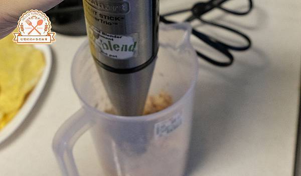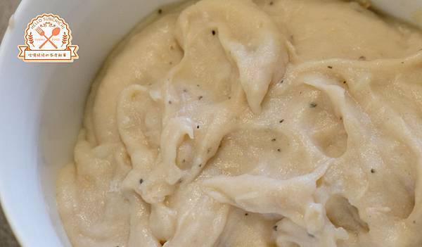 3.用食物處理器攪拌成泥,如果沒有,就用湯匙壓碎餡料再拌勻。